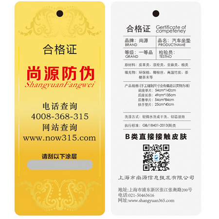 5.從數(shù)碼技術(shù)上講:防偽合格證利用計(jì)算機(jī)技術(shù)、通訊技術(shù)及密碼技術(shù)生成無(wú)規(guī)則、不重復(fù)的防偽數(shù)碼,實(shí)在做到一物一碼,安全保密,防偽功能極佳。