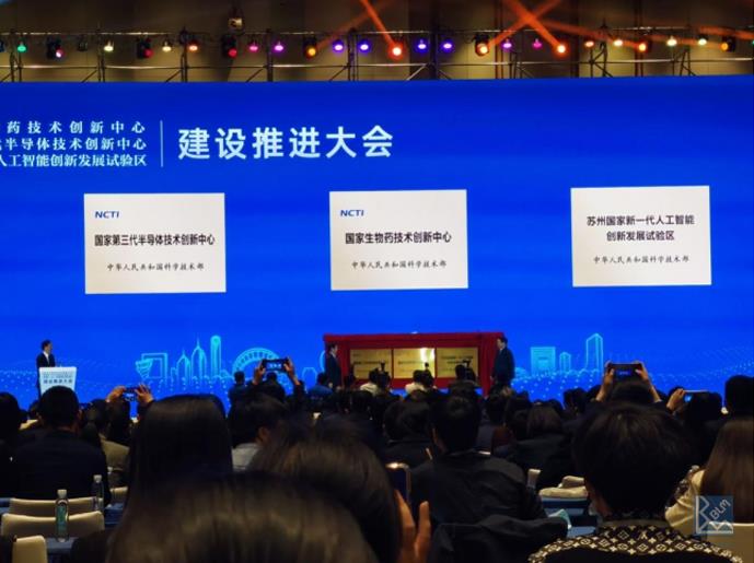 4月19日,由科技部批復(fù)同意江蘇省人民政府申請(qǐng)的國(guó)家生物藥技術(shù)創(chuàng)新中心、國(guó)家第三代半導(dǎo)體技術(shù)創(chuàng)新中心、國(guó)家第一代人工智能創(chuàng)新發(fā)展試驗(yàn)區(qū)建設(shè)推進(jìn)大會(huì)在蘇州隆重舉行。